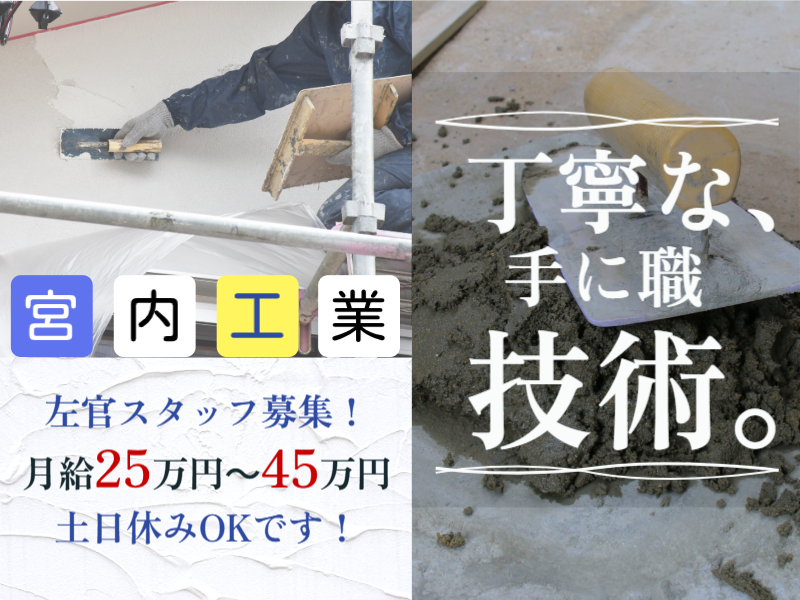 経験者優遇(左官、型枠工事など)、普通自動車免許(MT)